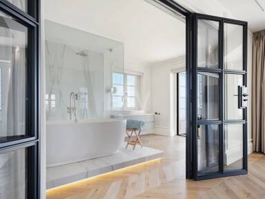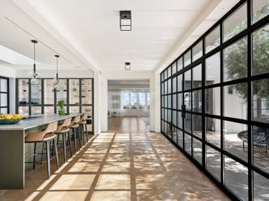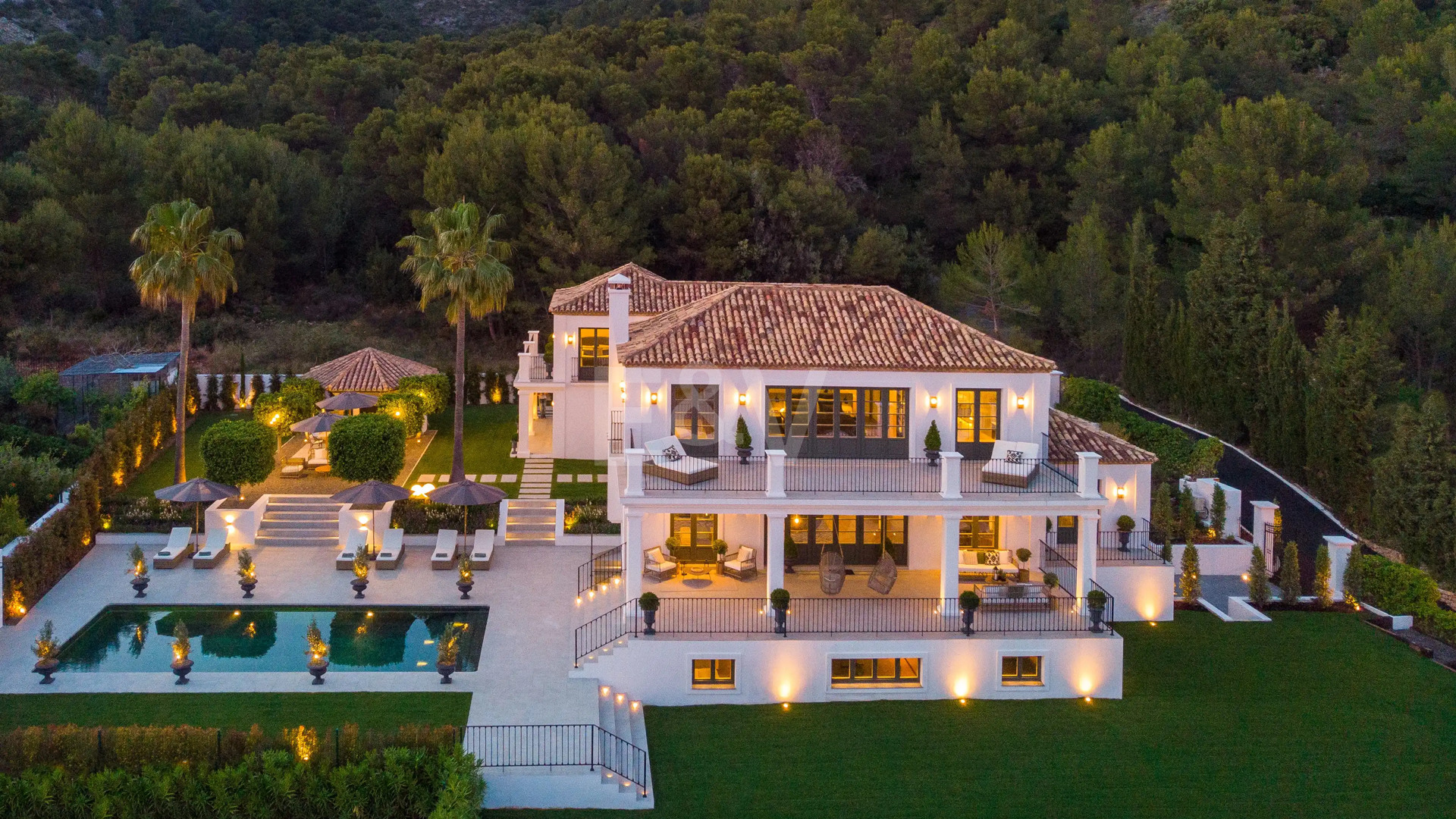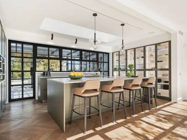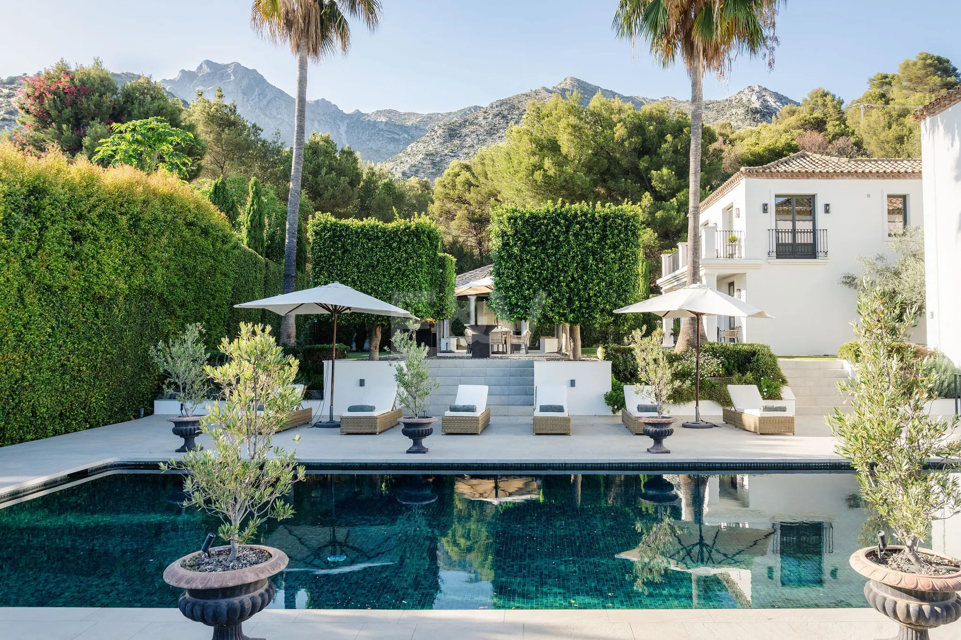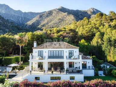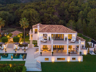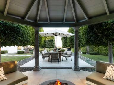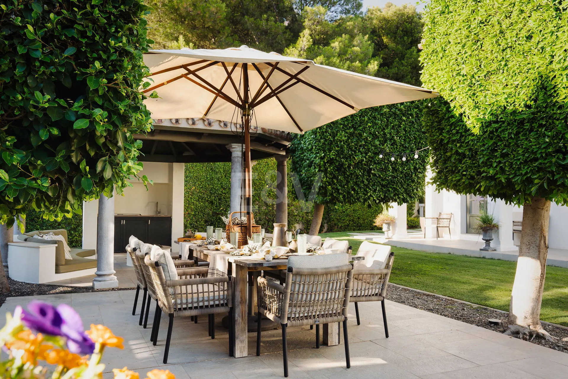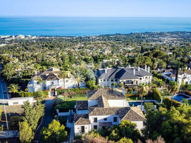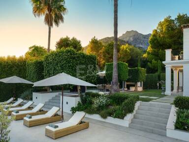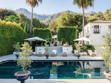 Über ihre außergewöhnlichen Räumlichkeiten für gesellige Anlässe hinaus ist die Residenz als privater Rückzugsort von unvergleichlichem Komfort und Exklusivität konzipiert. Sechs sorgfältig ausgestattete Schlafzimmersuiten bieten abgeschiedene Rückzugsorte, wobei die Hauptbereiche einen atemberaubenden Blick auf die Küste bieten und über beeindruckende, mit Marmor ausgestattete Badezimmer verfügen, deren Mittelpunkt freistehende, skulpturale Badewannen bilden. Das Bekenntnis zu einem gehobenen Lebensstil findet seinen weiteren Ausdruck in einem umfassenden Wellness- und Freizeitbereich, der ein hochmodernes Kino, einen privaten Fitnessraum und ein eigenes Spa umfasst, während die wunderschön gestaltete Außenanlage ein Meisterwerk des Lebens im Freien darstellt, geprägt von einem beeindruckenden Swimmingpool, einer versenkten Feuerstelle und dem sanften Schatten alter Olivenbäume.