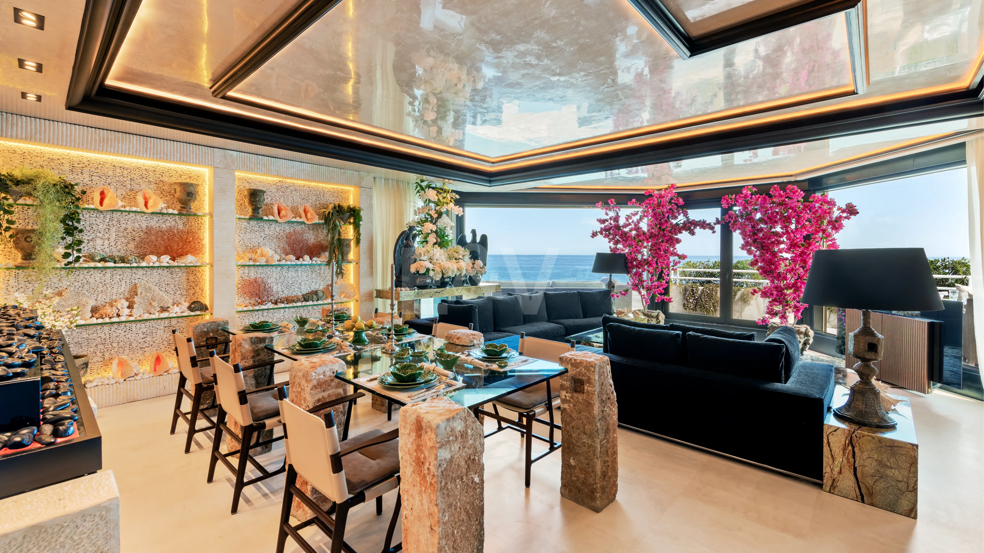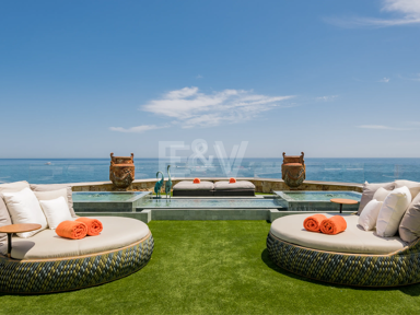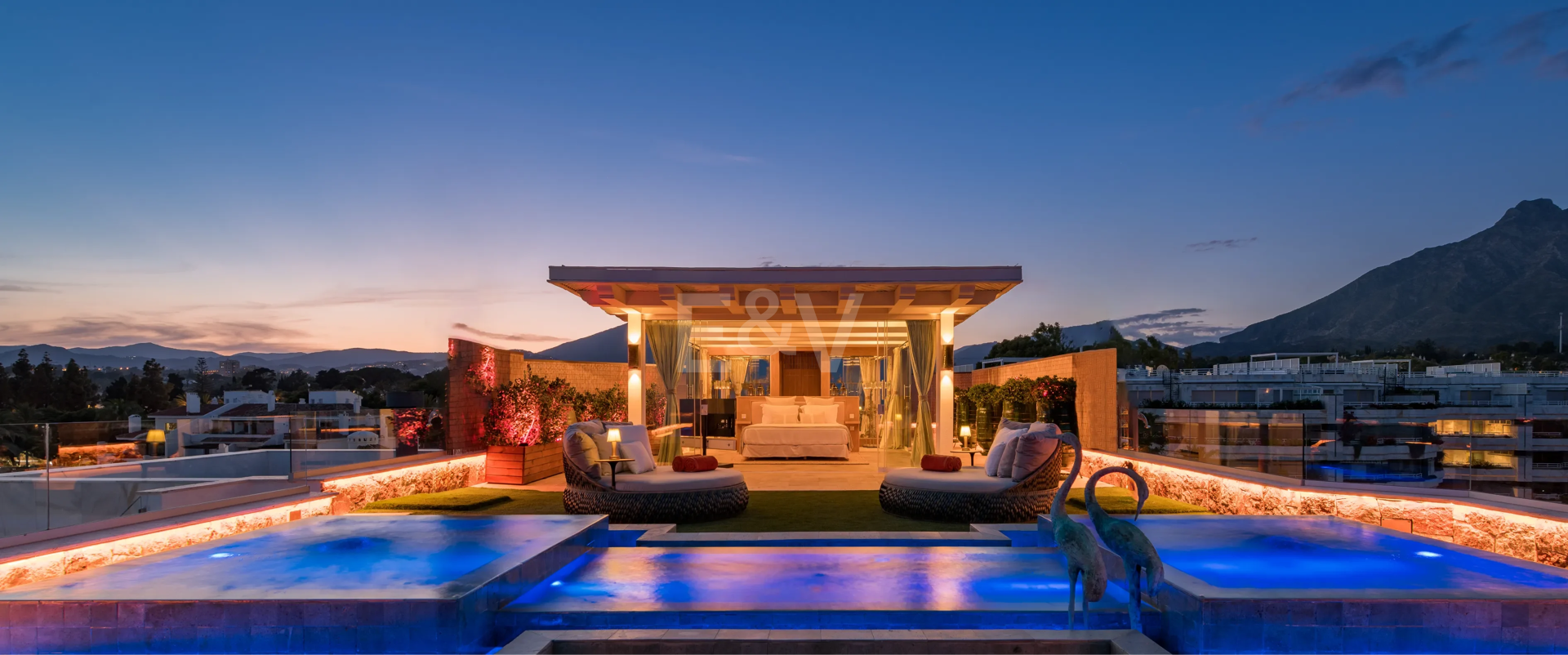 Situado entre el exclusivo Puerto Banús y el emblemático Hotel Puente Romano, THE SEA Infinity Penthouse se erige como un ejemplo incomparable de opulencia costera en el corazón de la Milla de Oro de Marbella. Esta propiedad recientemente renovada es una fusión de dos áticos en una única y amplia residencia que define el pináculo de la vida de lujo. Diseñado con los más altos estándares, ofrece una ubicación inigualable con impresionantes vistas al mar desde todas las habitaciones, por lo que es una joya rara en uno de los barrios más prestigiosos de la Costa del Sol.