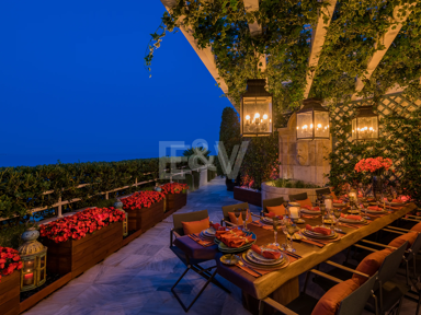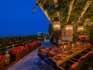 La cocina gourmet es nada menos que extraordinaria, diseñada tanto para la excelencia culinaria como para el atractivo estético. Electrodomésticos de última generación, armarios a medida y exquisitas encimeras de piedra hacen que este espacio sea a la vez funcional y hermoso. La cocina fluye sin esfuerzo hacia el comedor, que está enmarcado por amplias puertas de cristal que dan a las terrazas, mejorando aún más la experiencia de vida interior-exterior.