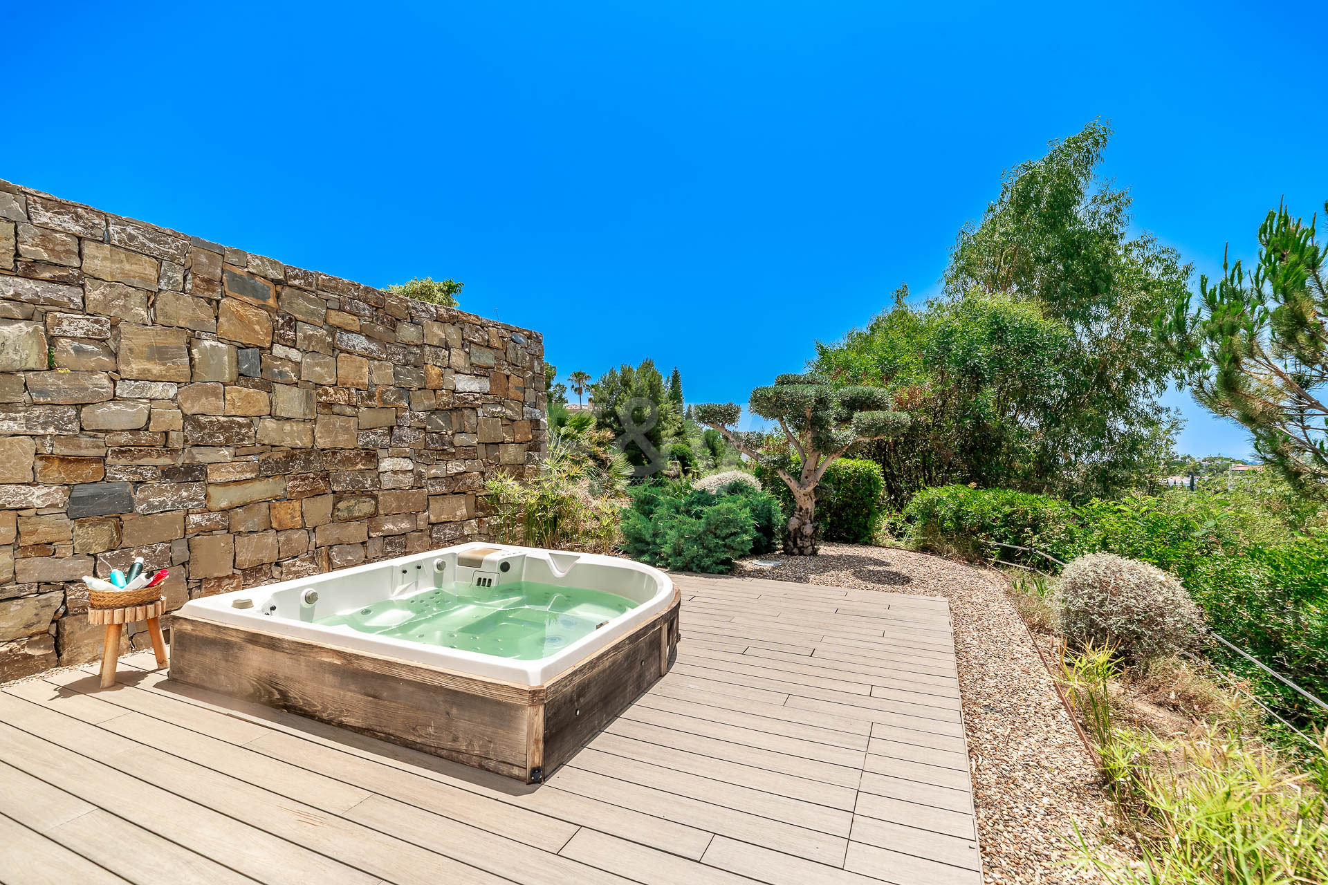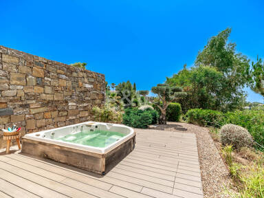 Otras dos habitaciones con baño ofrecen privacidad y carácter, incluida una suite junior con su propio salón y vestidor. En la planta baja, el espacio está dedicado al placer: una bodega cinematográfica, una sala de juegos, una suite de spa con sauna y hammam, y un garaje estilo galería para seis coches, todo ello perfectamente integrado en la geometría esculpida de la villa.