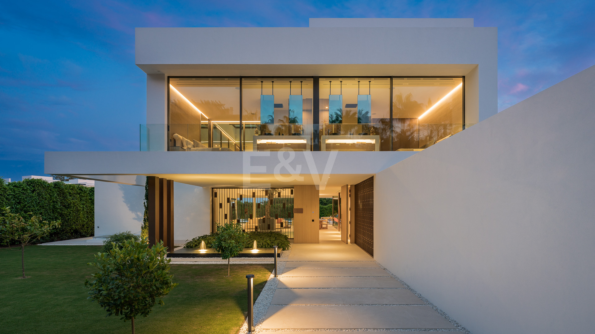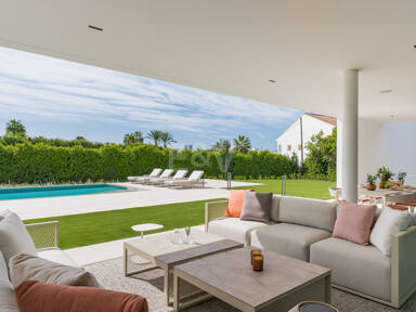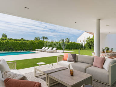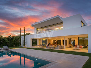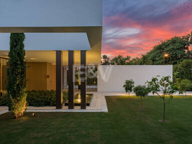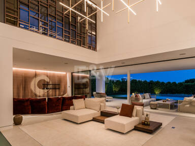 Pour plus de commodité, l’étage inférieur comprend une buanderie bien conçue, des toilettes pour les invités et une chambre en-suite magnifiquement aménagée, offrant confort et intimité aux visiteurs ou au personnel. La villa dispose également d’un garage spacieux pouvant accueillir jusqu’à huit véhicules, garantissant ainsi un vaste espace de stationnement et de stockage.