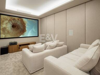 Adjacent au bar, l’espace de divertissement est aménagé pour le confort et le plaisir. Une table de billard contemporaine, un home cinéma cossu avec des panneaux muraux acoustiques et un espace de vie ouvert se combinent sans effort pour offrir une expérience sociale de haut niveau.