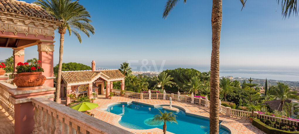 Dieses Anwesen zählt zweifellos zu den exklusivsten Immobilien in Marbella. Es liegt an der Spitze der renommierten und gesicherten Wohnanlage von Sierra Blanca, eingebettet in die grünen Hügel der Stadt.