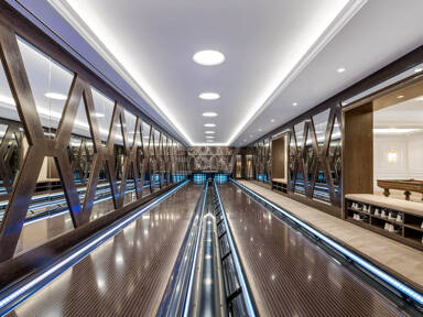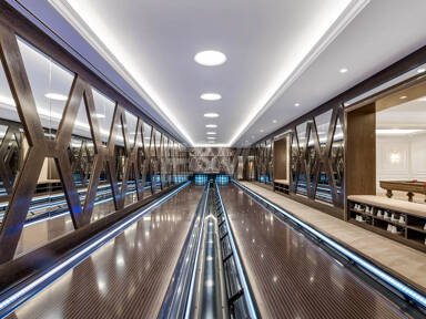 The entertainment facilities elevate leisure to an art form. A twenty-two-seat cinema, engineered to professional broadcast standards, offers an immersive audiovisual experience with precision sound isolation and advanced projection technology. A professional double bowling alley provides a refined entertainment option, while an billiards lounge with a bespoke bar creates an sophisticated space for social gatherings.