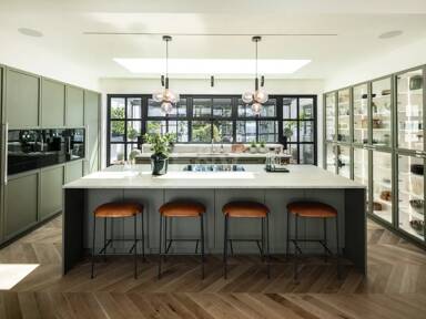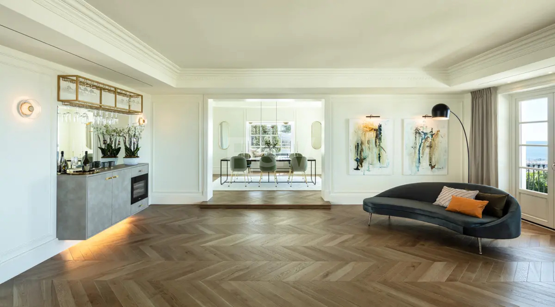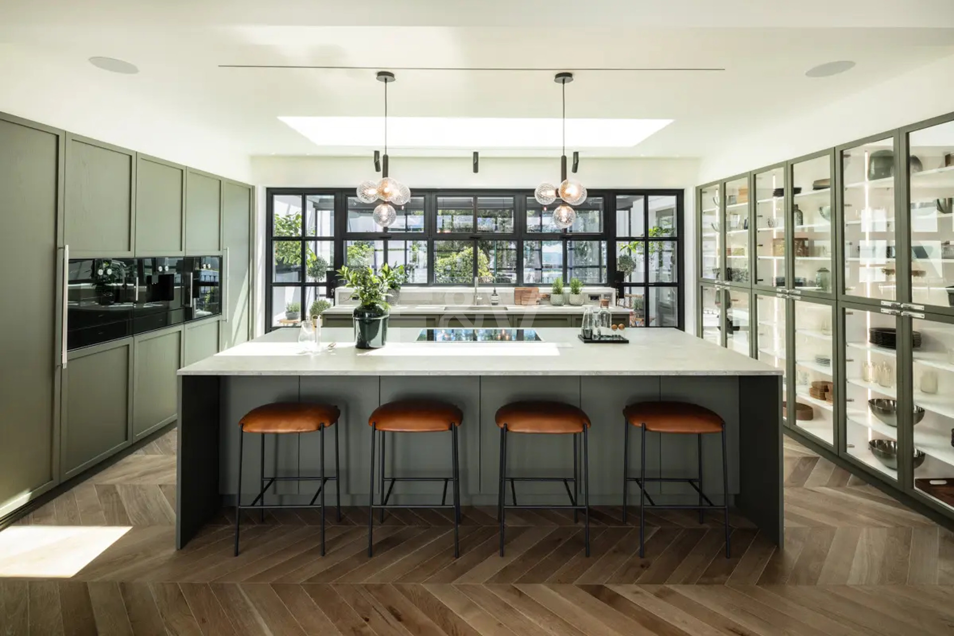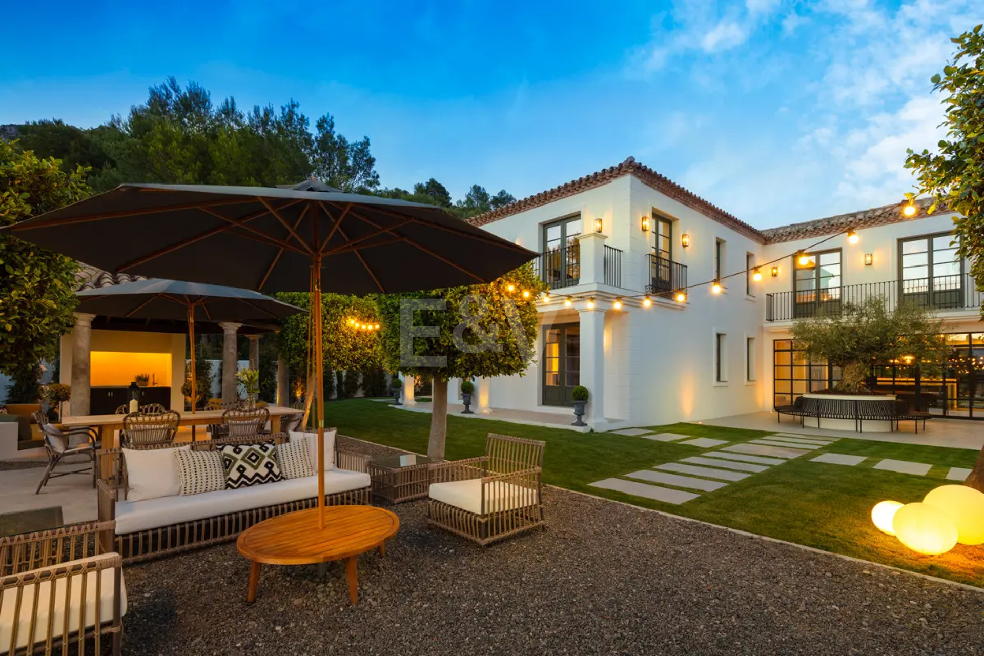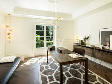 Beyond its exceptional entertaining spaces, the residence is conceived as a private retreat of unparalleled comfort and exclusivity. Six meticulously appointed bedroom suites offer secluded havens, with the primary spaces featuring sweeping coastal vistas and striking marble-finished bathrooms centred around sculptural freestanding tubs. The dedication to an elevated lifestyle is further realised in a comprehensive wellness and leisure realm, comprising a state-of-the-art cinema, private gymnasium, and dedicated spa, while the beautifully curated grounds provide a masterclass in al fresco living, anchored by a striking swimming pool, a sunken fire-pit lounge, and the subtle shade of mature olive trees.