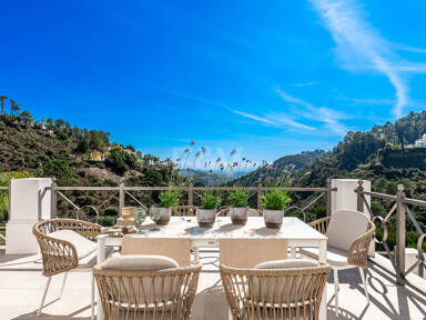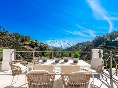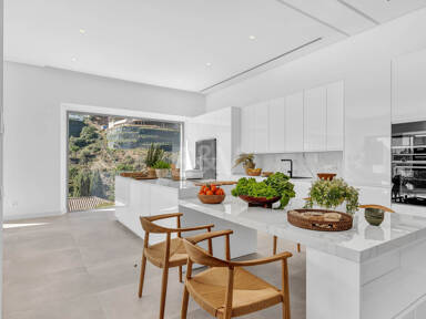 Villa Choggori is an exceptional contemporary villa located in the exclusive, secure community of El Madroñal. Positioned on an elevated plot of 5,000 m², the villa offers sweeping views of the Mediterranean Sea and surrounding green hills, creating an idyllic environment of peace and privacy. With an expansive built area of 1,350 m², this masterpiece is designed to the highest standards, where sophisticated modern architecture meets luxurious comfort. The striking design, clean lines, and generous windows create a seamless connection between the indoors and the breathtaking outdoor spaces.