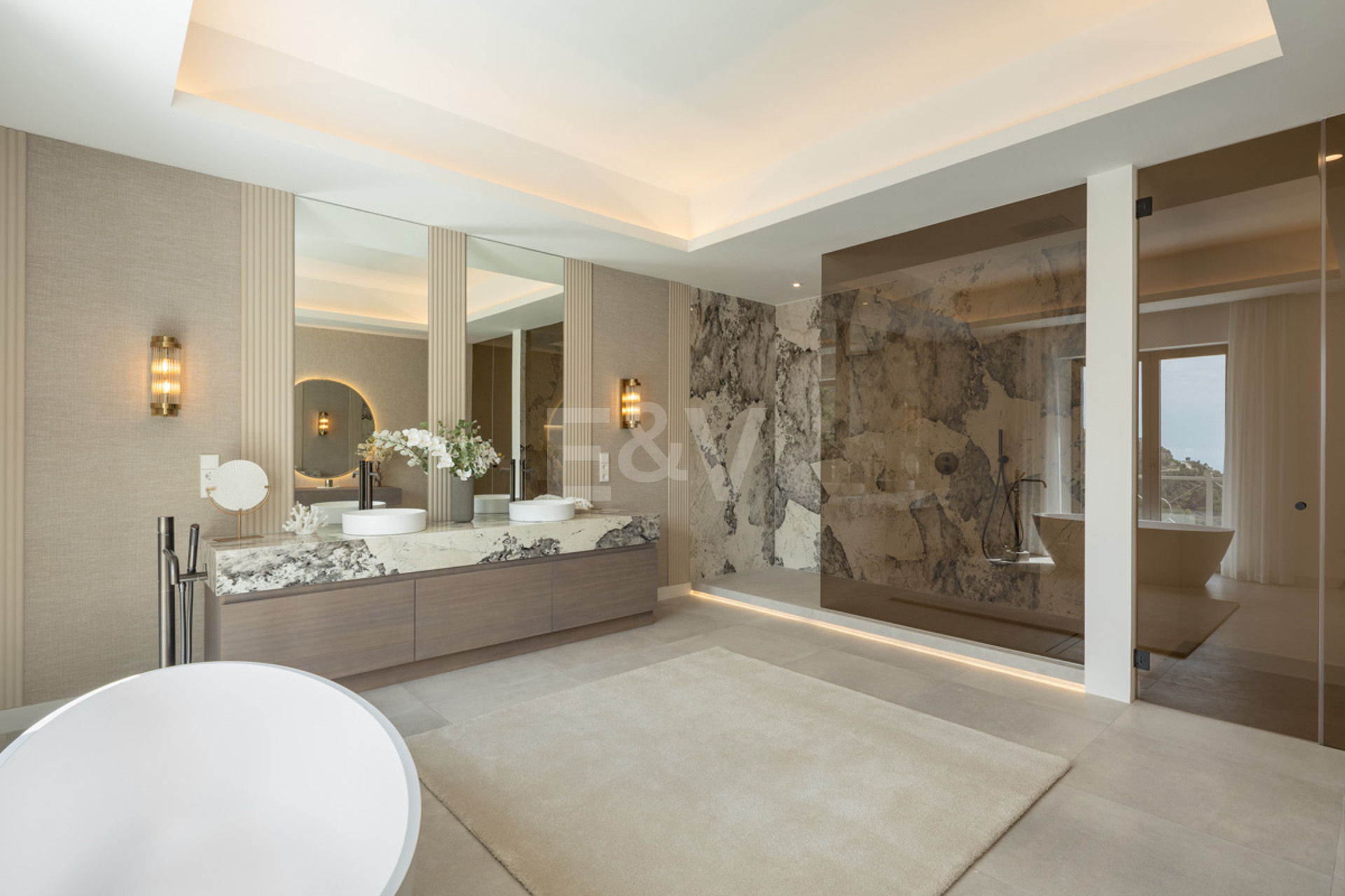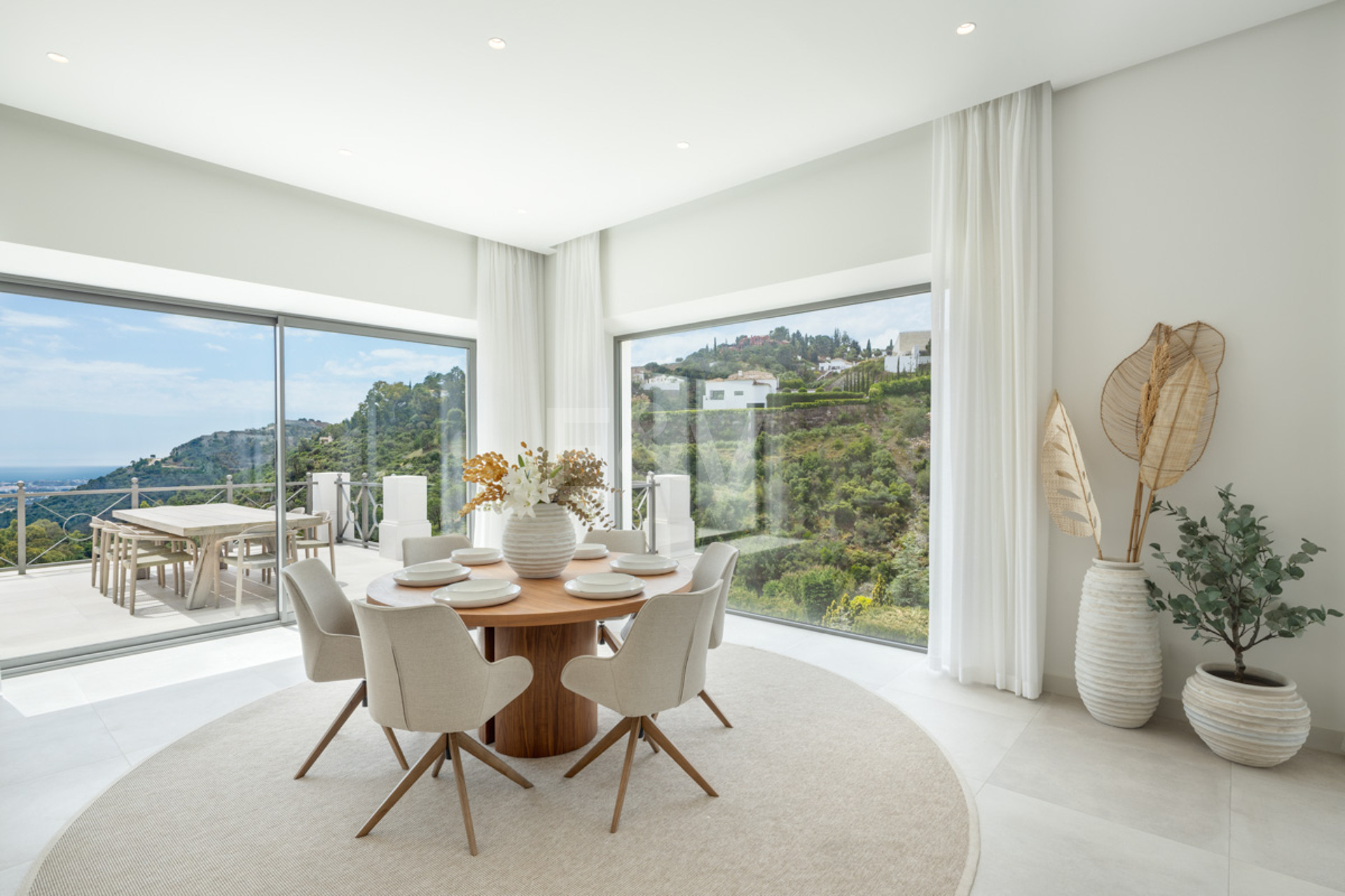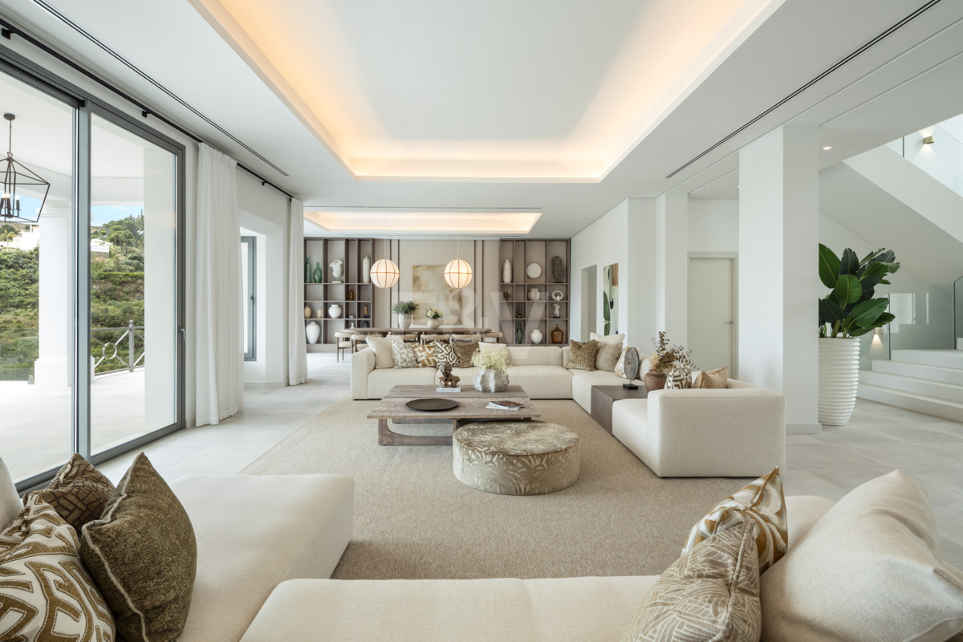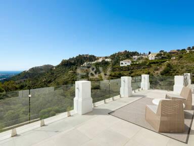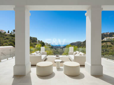 Villa Choggori is an exceptional contemporary villa located in the exclusive, secure community of El Madroñal. Positioned on an elevated plot of 5,000 m², the villa offers sweeping views of the Mediterranean Sea and surrounding green hills, creating an idyllic environment of peace and privacy. With an expansive built area of 1,350 m², this masterpiece is designed to the highest standards, where sophisticated modern architecture meets luxurious comfort. The striking design, clean lines, and generous windows create a seamless connection between the indoors and the breathtaking outdoor spaces.