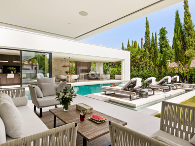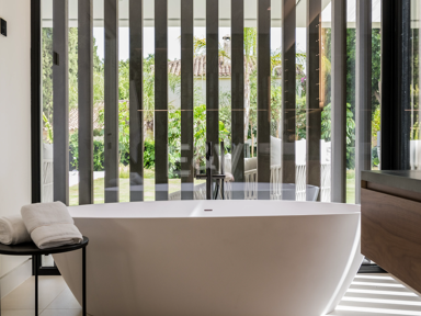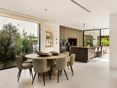 Outdoors, every detail encourages a life lived beautifully. From the shaded breakfast table beside the sparkling pool to the sunken chill-out lounge immersed in greenery, the villa’s exterior comforts mirror its interiors — refined, serene, and designed to inspire joy.