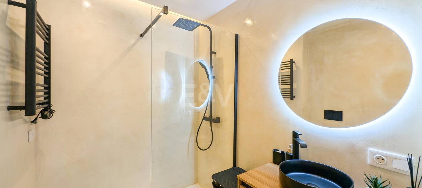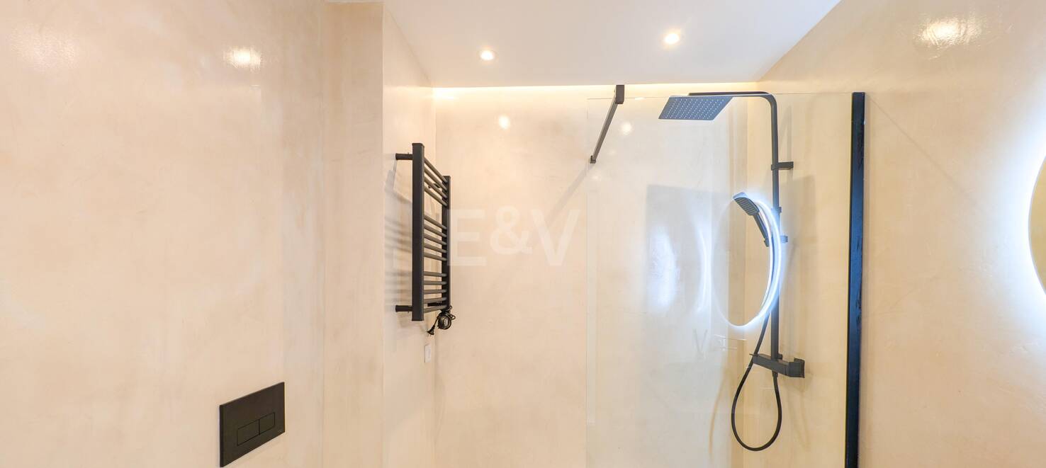 The bedrooms are spacious and bright, with en-suite bathrooms equipped with underfloor heating and large built-in wardrobes. Additionally, it features central air conditioning, electric shutters, a built-in safe, and a private storage room for added convenience.