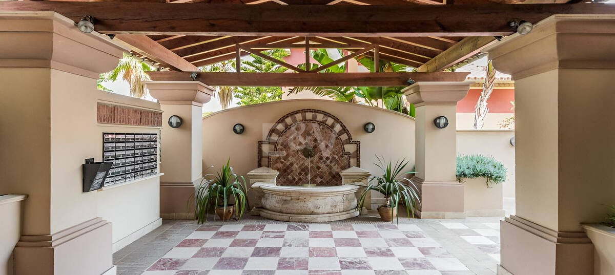 Its location is unbeatable, within walking distance of exclusive beach clubs, restaurants, shops, schools, and just minutes from Puerto Banús and Marbella.