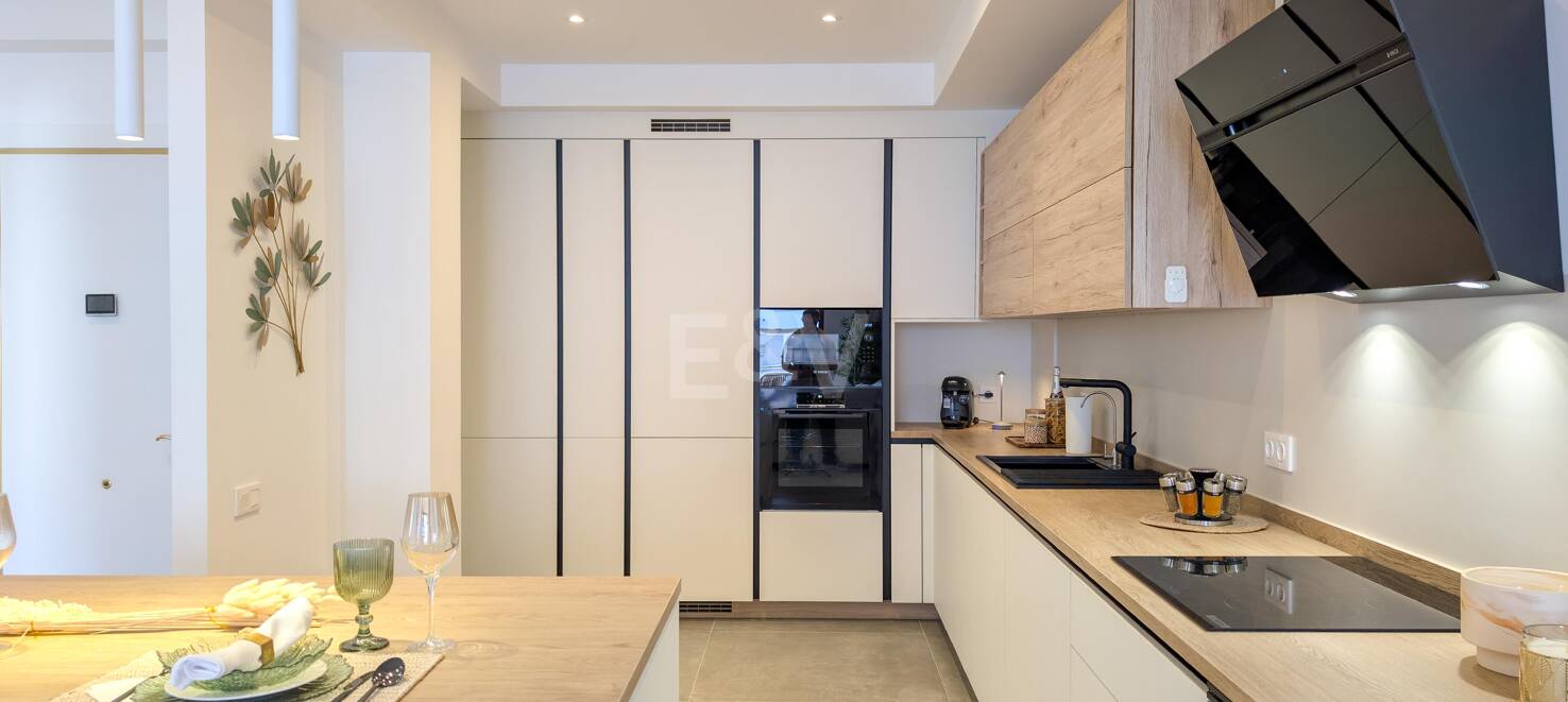 The property is situated within a gated complex with 24-hour security, offering a private and secure environment. The open-concept living-dining room seamlessly connects with a spacious terrace, ideal for enjoying the sound of the sea and the gentle Mediterranean breeze.