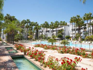 Att bo i denna utmärkta lägenhet är ett sällsynt privilegium som återspeglar den raffinerade livsstilen som erbjuds av Marbellas berömda Golden Mile. Perfekt beläget i den ikoniska Puente Romano Beach Resort, ger denna bostad omedelbar tillgång till en exklusiv strandklubb, där mjuk sand möter det klara Medelhavsvattnet – själva kärnan i sofistikerad och kustnära lugn.