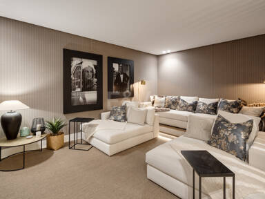 Villans nedre plan är tillägnad njutning och välbefinnande. Ett toppmodernt biorum ger en filmupplevelse med plyschsäten och omslutande ljud, utformat för både stora filmkvällar och lugna kvällar hemma. I närheten finns ett spelrum som bjuder in till roliga stunder och underhållning, skräddarsytt för alla åldrar i en sofistikerad miljö.