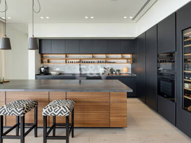 På detta plan finns också en fristående lägenhet som erbjuder elegant och självständigt boende för personal eller långtidsgäster. Lägenheten har eget kök och badrum och garanterar komfort, avskildhet och funktionalitet utan att kompromissa med designen.